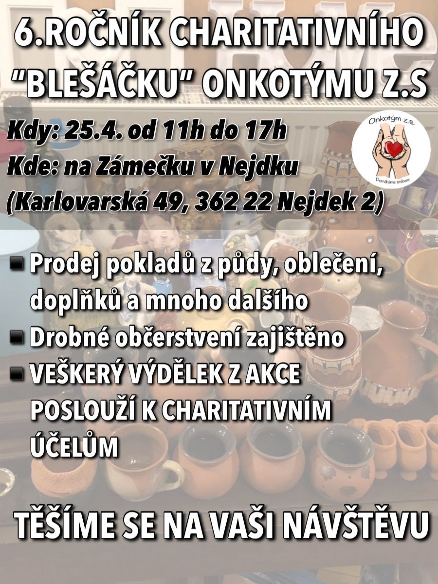Přijďte si za námi na Zámeček nakoupit a zároveň podpořit Onkotým. Máme toho opravdu spoustu. Je to taková menší náhrada za zrušený podzimní Blešáček . Každá koruna nám pomůže pomáhat. Děkujeme za sdílení a moc se na vás budeme těšit